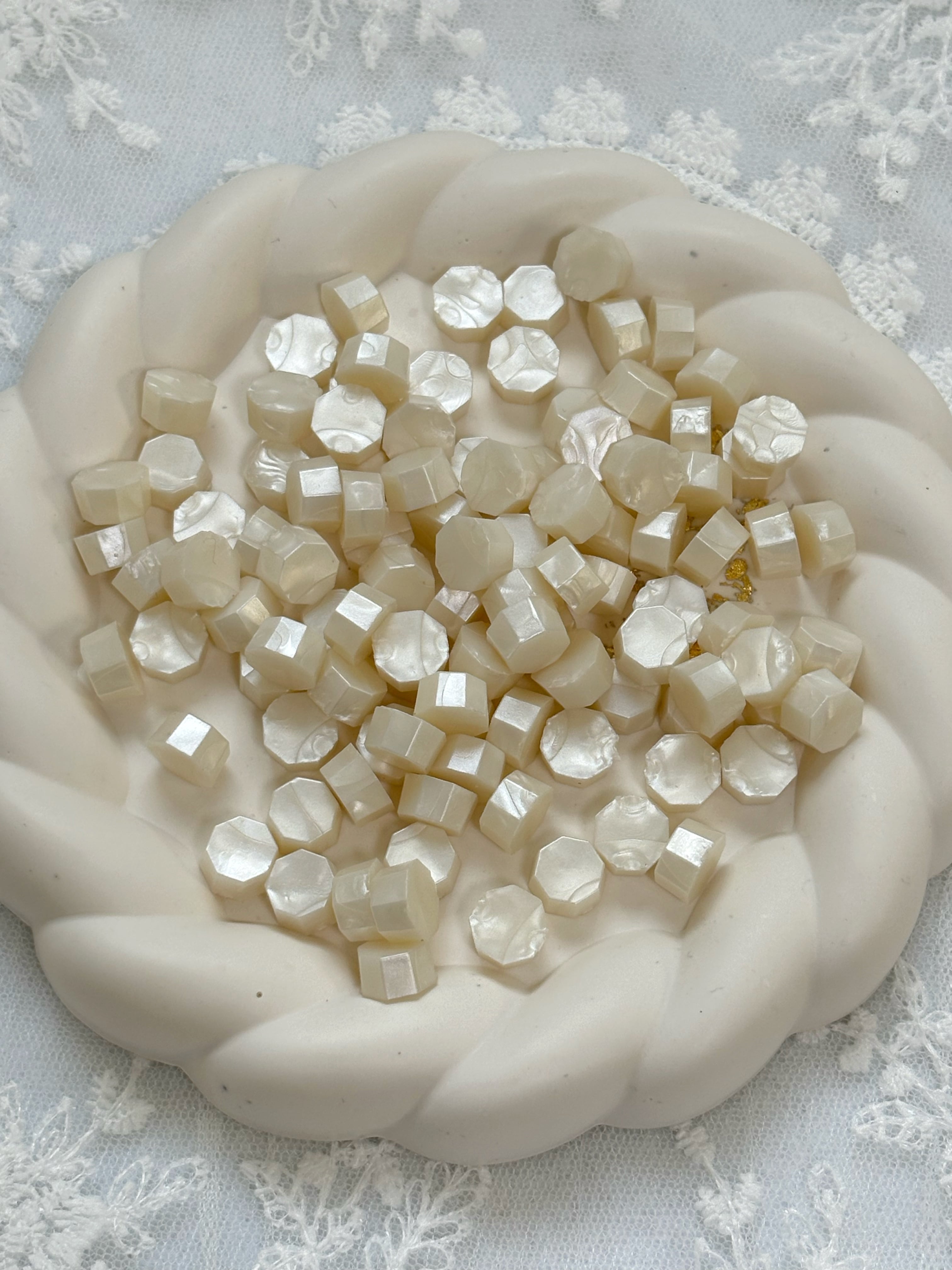 パールホワイトが30g入っている単色ワックスです。