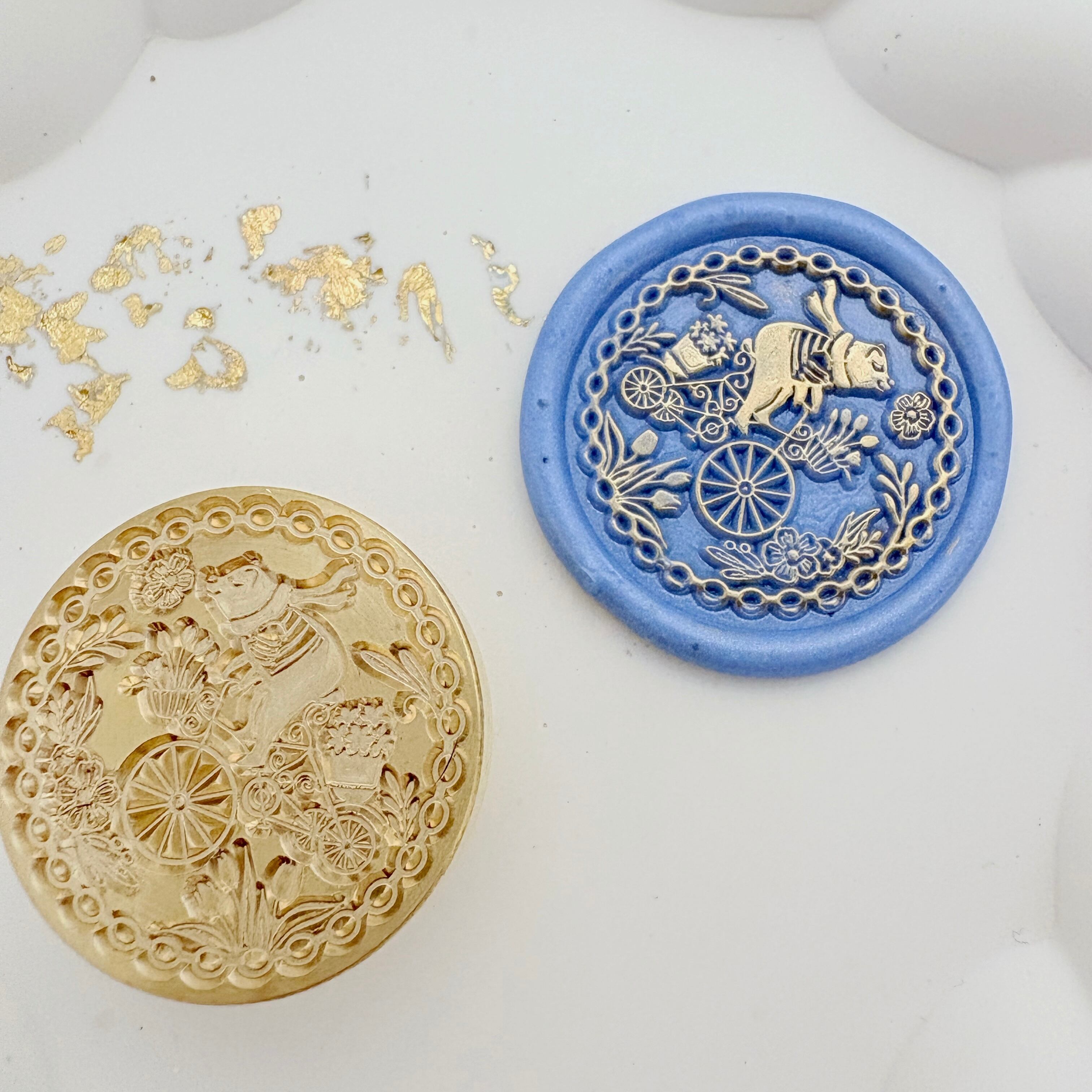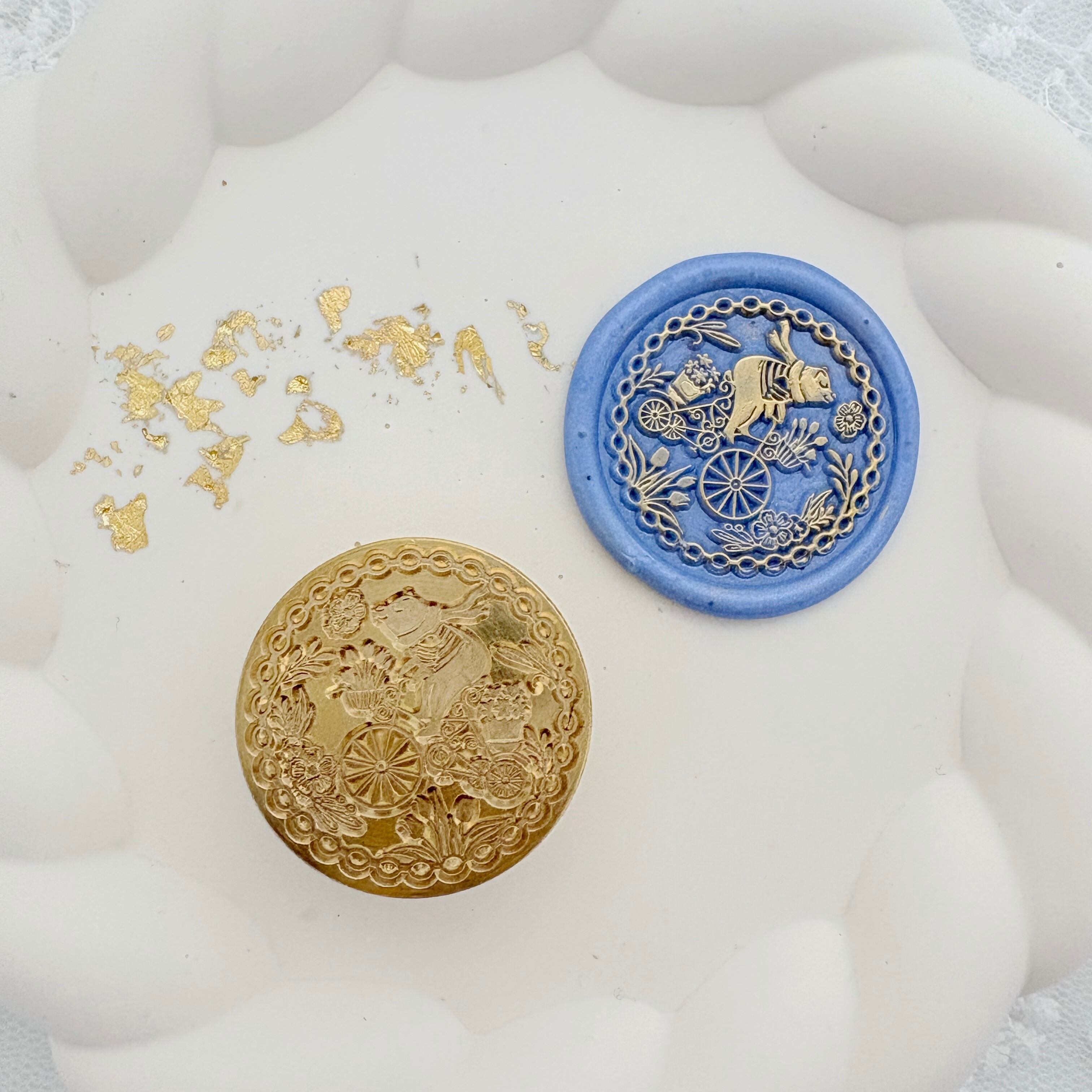 自転車にのり風に吹かれている少しオシャレなくまさんのシーリングスタンプヘッドです。