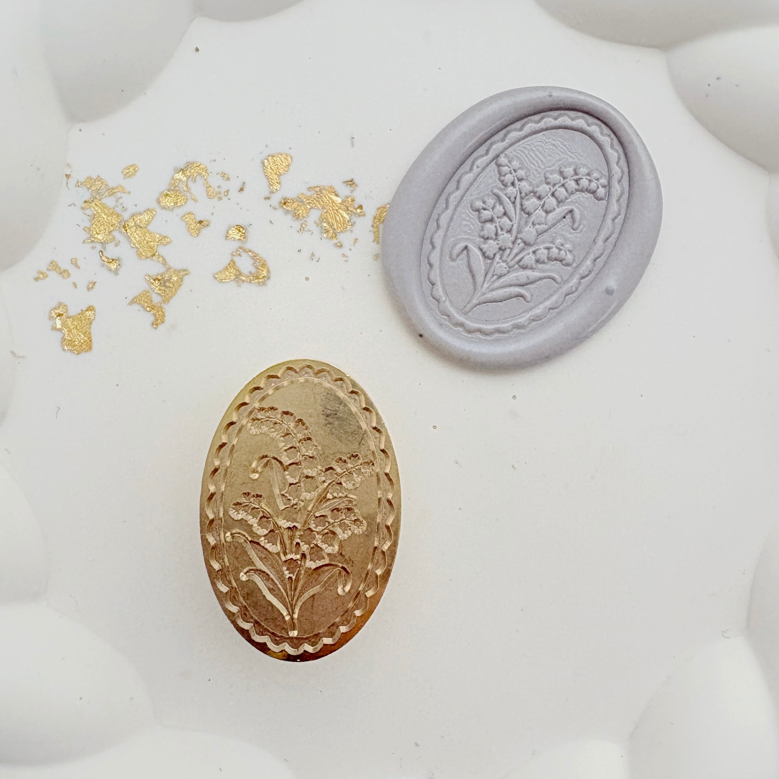 すずらんが美しい楕円型のシーリングスタンプヘッドです。 サイズ:縦3cm 横2cm